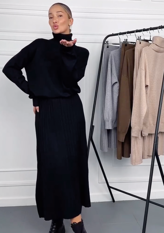 Chiquease: Conjunto Minimalista de Suéter y Falda de Cuello Alto