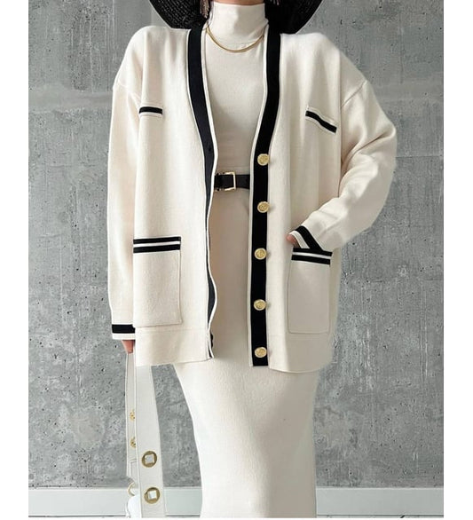 Elegancia Modesta: El Conjunto de Punto Liso de Dos Piezas