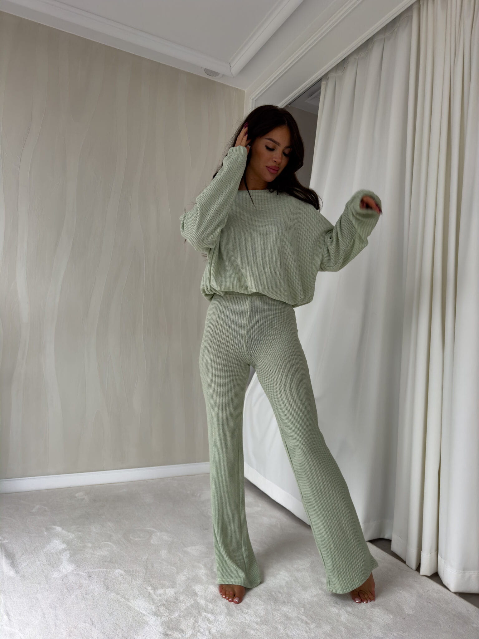 El secreto del conjunto ANGEL reside en su material. Está confeccionado con un tejido de la más alta calidad, excepcionalmente suave. Al tocarlo, sentirás inmediatamente la diferencia: un tacto delicado y confortable que querrás llevar puesto todo el día. Esta calidad superior garantiza no solo una sensación placentera, sino también una durabilidad que mantendrá la suavidad lavado tras lavado.