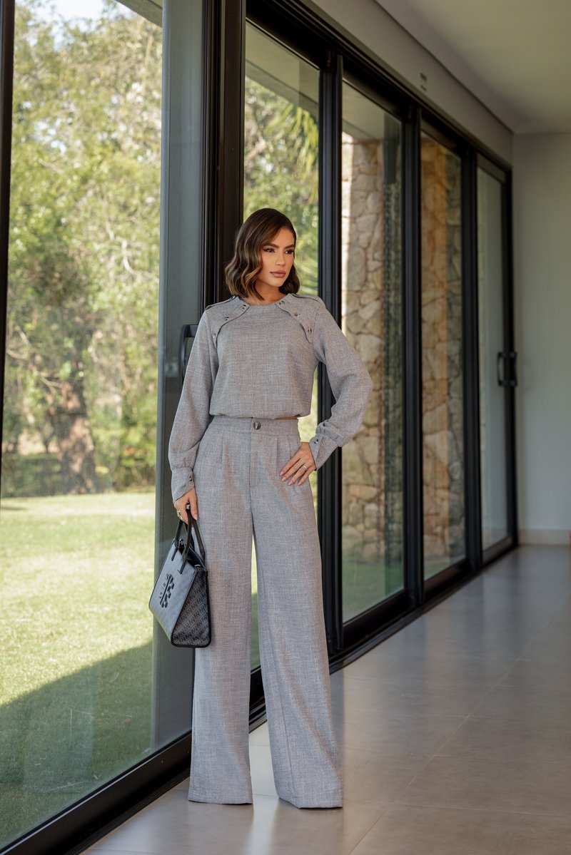 El diseño sastre asegura que el conjunto tenga un caída impecable (caimento impecável). Cada pieza ha sido cortada para crear una silueta definida y elegante que se mantiene perfecta desde la mañana hasta la noche, garantizando que siempre te sientas y te veas profesional.