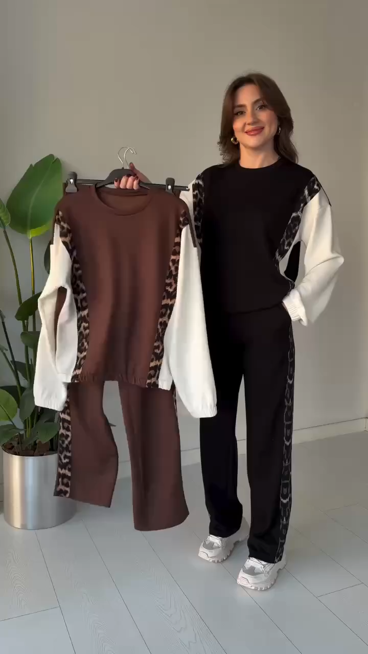 El Wild Set combina la suavidad del tejido de punto con un diseño moderno y detalles animal print que elevan su estilo. Es el equilibrio perfecto entre comodidad diaria y un look lleno de personalidad