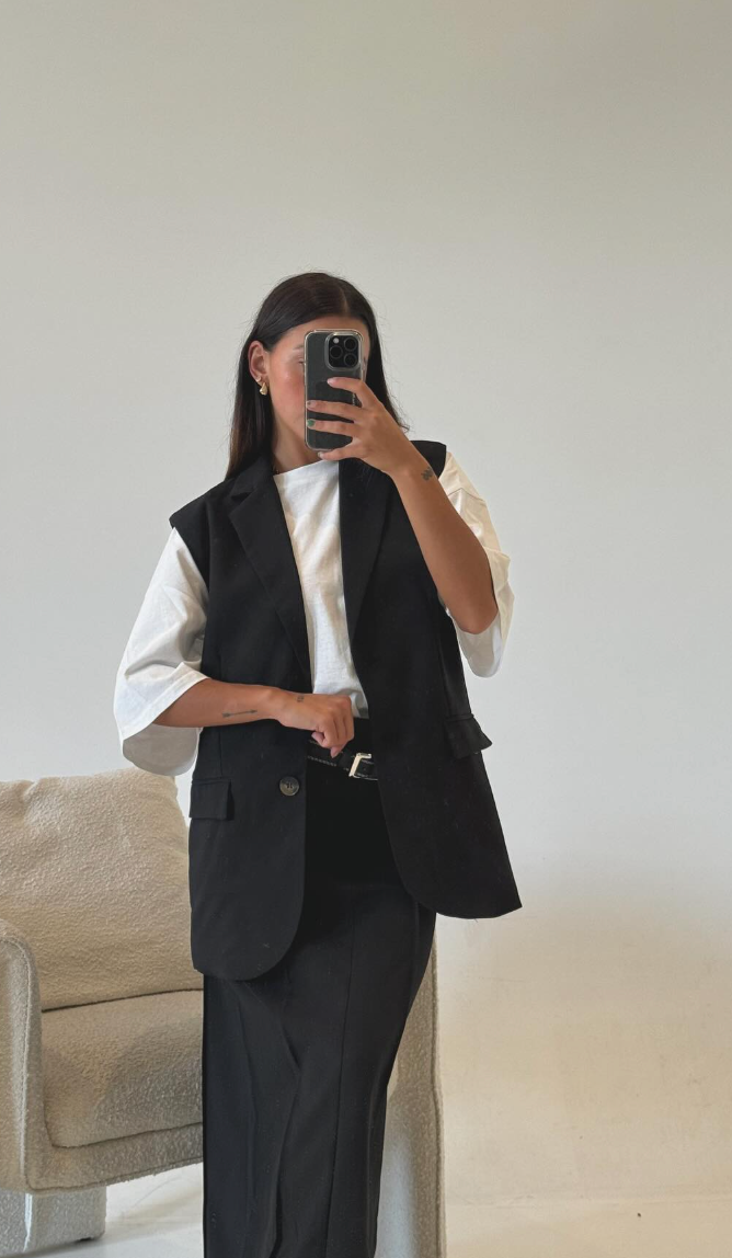 Di adiós a los abrigos voluminosos que ocultan tu figura. El conjunto Tundra te ofrece una elegancia estructurada y calidez para los meses más fríos. Compuesto por un chaleco de sastrería y una falda larga y ajustada, este dúo es la clave para un look sofisticado, moderno y abrigador.
